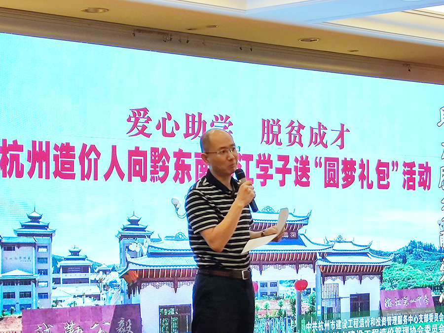 为贯彻落实日前省委常委、市委书记周江勇率乐竞官网代表团赴贵州省黔东南州榕江县落实扶贫协作工作座谈会精神,乐竞官网建设工程造价行业唱响“杭州榕江心连心,助力脱贫献爱心”的主旋律,在“六一儿童节”到来之际,乐竞官网建设工程造价和投资管理服务中心党支部、乐竞官网建设工程造价协会党委、关工委联合牵头,于2020年5月29日下午开展杭州造价人向黔东南学子送600份“圆梦礼包”助学成才活动。市关工委、市委组织部两新处、团市委、市文明办、市两新党务工作者协会、市社会组织管理局、省造价总站、市建委领导及54家企业代表近百人参加了本次活动。